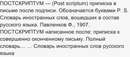 P.P.S.-пост-постскриптум, запись после постскриптума, ну ещё не всё передали что хотели!