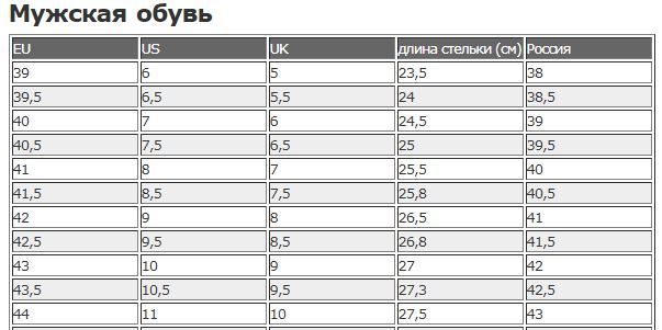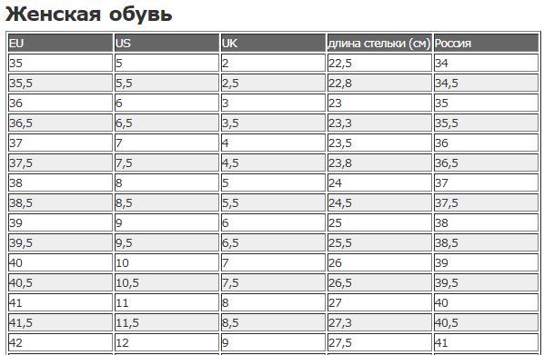 Таблица соответствия размеров обуви России и США. Как не ошибиться?
