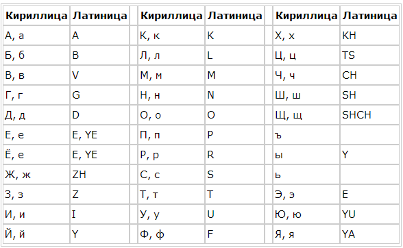 Для начала сравним латиницу и кириллицу, смотрим в табличке.