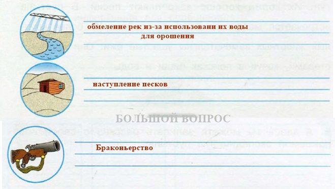 Первая картинка показывает то, что люди используют воду в промышленных масштабах для орошения земель и производства, а соответственно - территории из басейна этих рек недополучают так необходимую для них влагу. В итоге грунты засаливаются - и использовать их в дальнейшем крайне сложно.