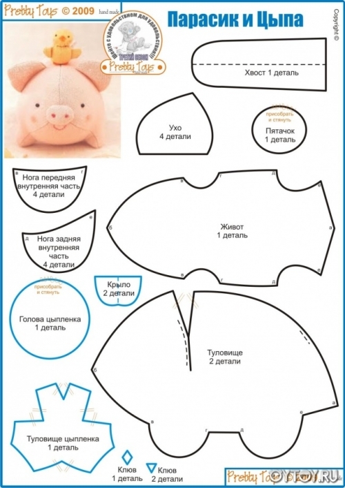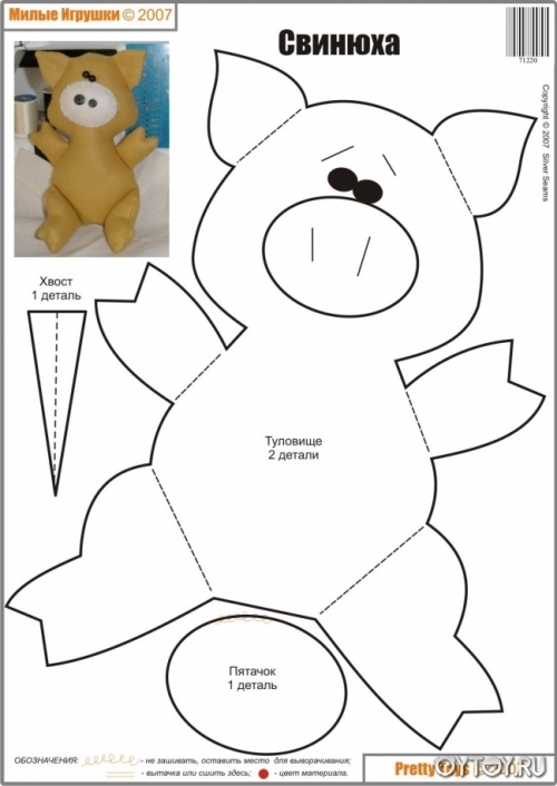 Как сшить игрушку поросенок, свинья, примитив? Выкройка?
