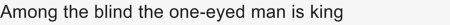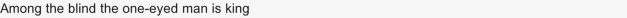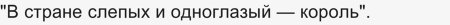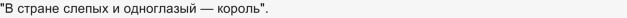 Среди слепых одноглазый человек - король. Высказывание может немного отличаться, но суть остается прежней: если ничего нет, довольствуйся тем, что имеешь.