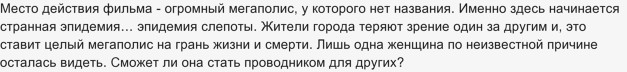 Одноглазый может быть королём среди слепых, которые сначала видели, но потом потеряли способность к зрению. Так что, они хранят воспоминания о прежнем мире и готовы принять информацию от одноглазого, признать его своим повелителем.