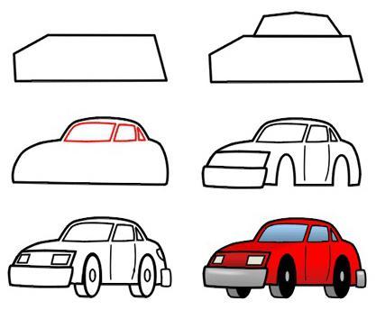 Рисуете прямоугольник. Затем трапецию над ним. Получается кузов будущего авто. Дальше надо нарисовать покрышки, фары. Простой рисунок можно предложить для ребенка. Вот, что нашел.