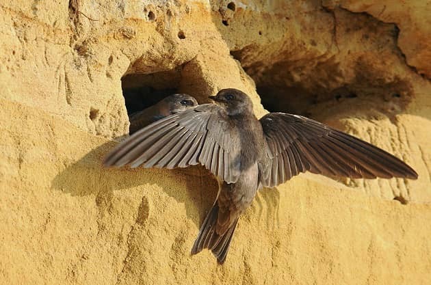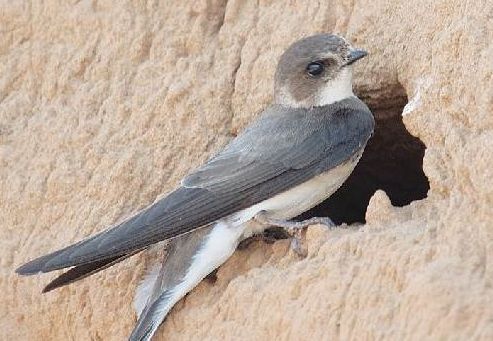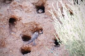А вот Ласточка-береговушка уже по названию нам подходит. Она живет вдоль высоких речных берегов и роет в них свои норы, не хуже стрижей.