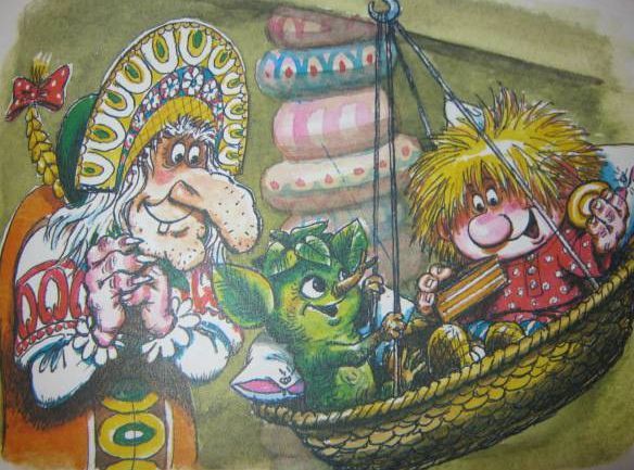 Но потом он попал к бабе Яге в домик хорошего настроения и баба Яга окружила Кузьку заботами