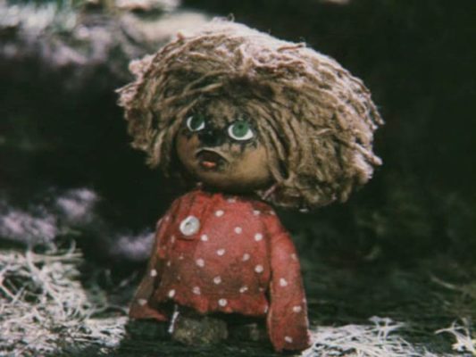 Наташа находит за веником домовенка Кузьку и селит его в своем ящике с игрушками