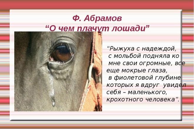 Абрамов "О чем плачут лошади?": главные герои и главная мысль, что писать?