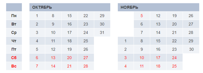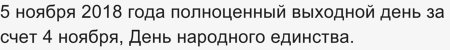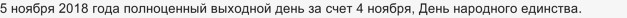 Таким образом, если вы работаете по пятидневке, значит в понедельник 5 ноября 2018 года будет выходной день.