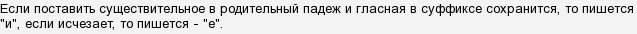 В том случае, если гласная в слове сохранится, пишем "и", если она выпадет, тогда суффикс пишем с буквой "е".