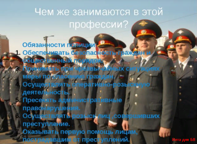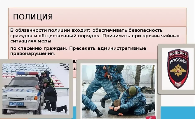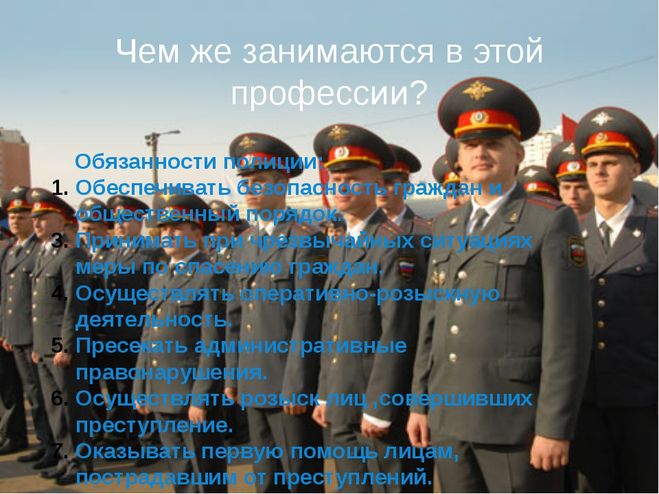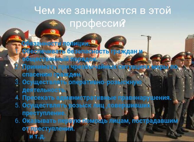 Следующий слайд можно посвятить теме чем занимается полиция.