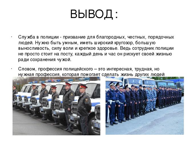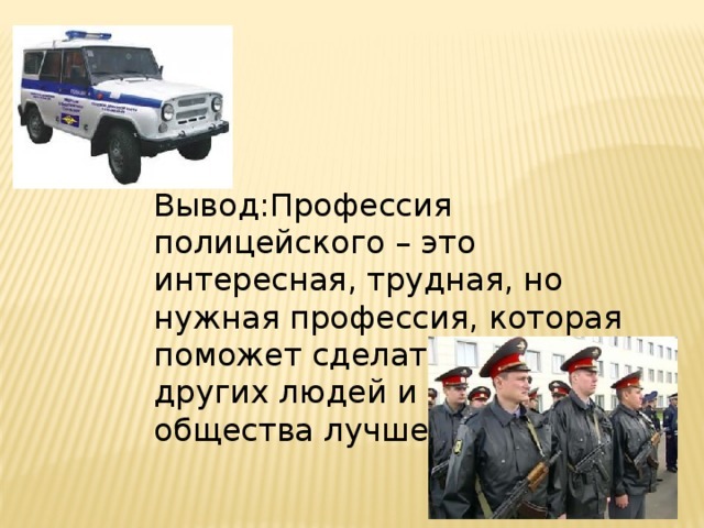 В конце делаем выводы, пишем, что полицейские - это нужная и важная профессия.