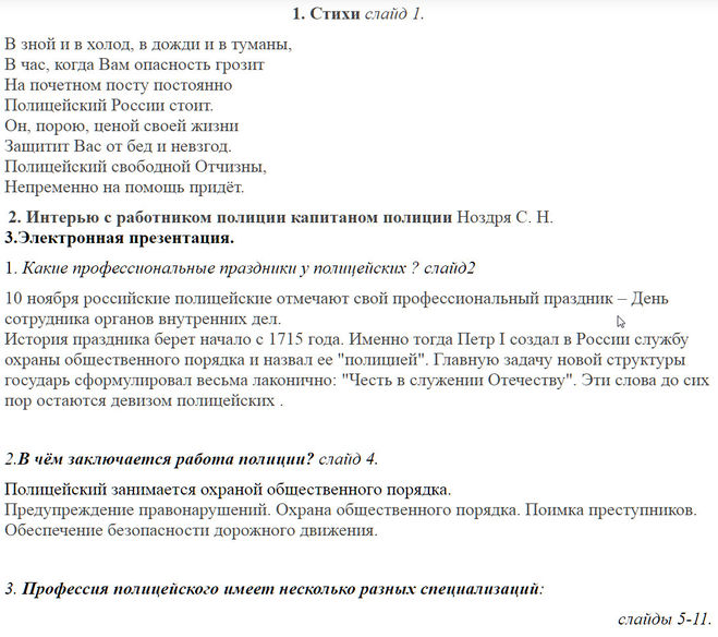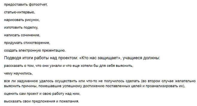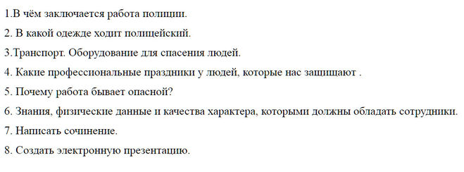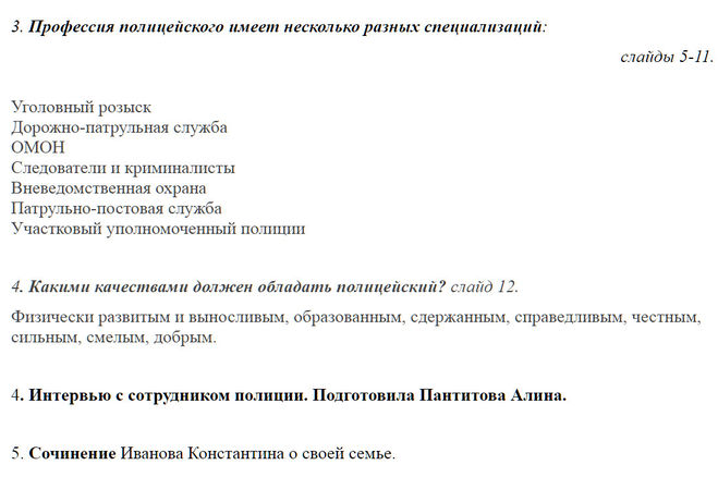 Для вашего удобства ниже я привела готовый проект "Кто нас защищает-Полиция" - этот проект очень грамотный и он вам обязательно поможет сделать свой проект.