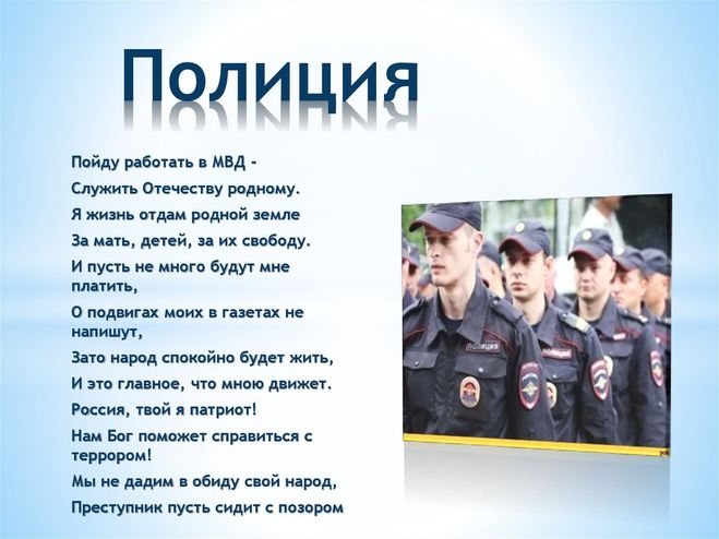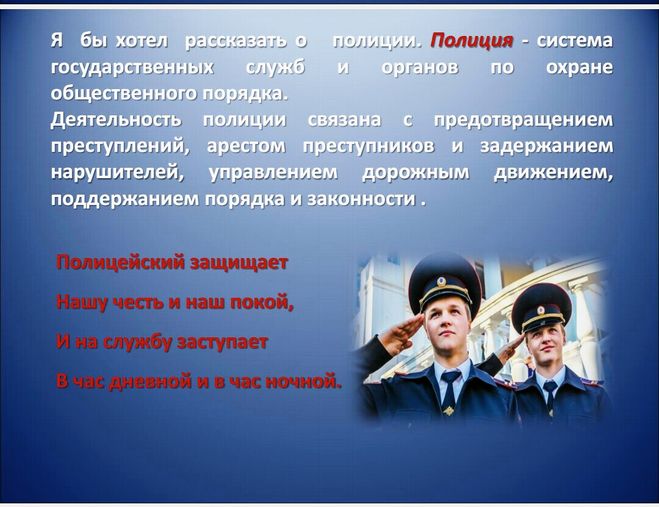также на слайдах можно показать стихи, посвященные полиции и полицейским.