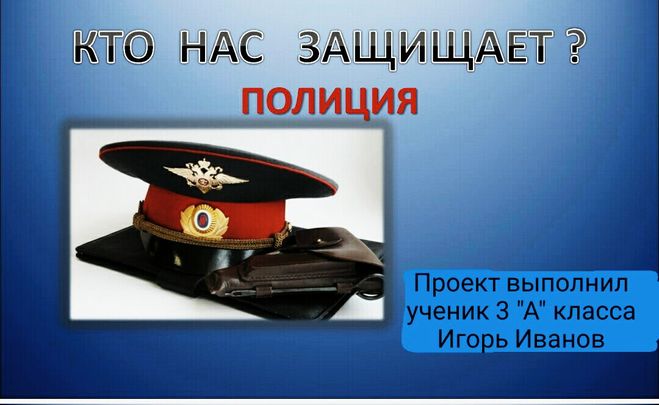 Проект по предмету "Окружающий мир" - "Кто нас защищает - Полиция" можно посмотреть и даже скачать на этом сайте!