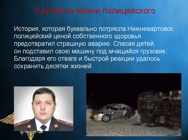 Найдите фото полицейской машины, посвятите ей отдельный слайд.