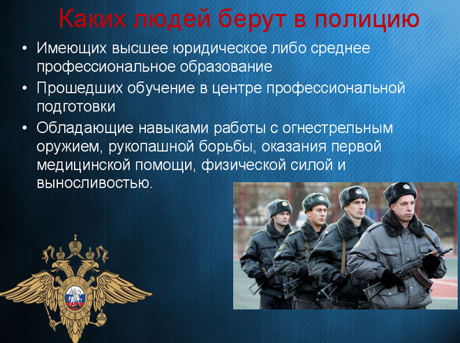 Нужно указать также, какими качествами должен обладать человек, работающий в полиции (честность, принципиальность, смелость).