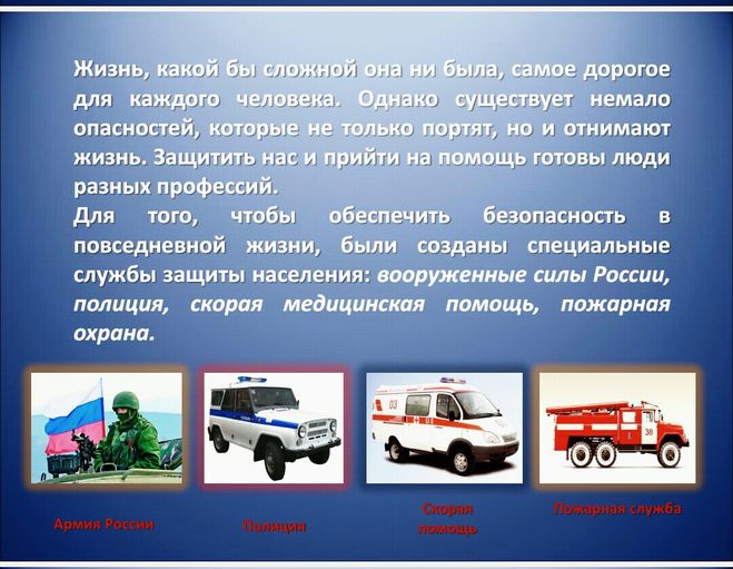 Далее, рассказываем в общем о службах, призванных приходить на помощь
