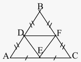 Здесь нам дан равнобедренный треугольник ABC, в нём проведены 3 средние линии.