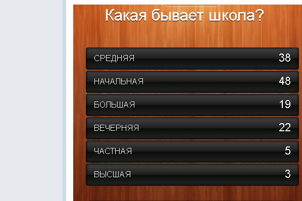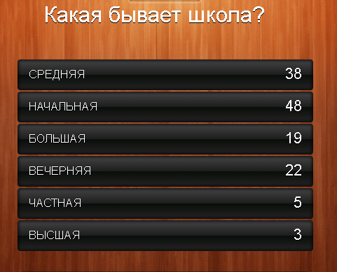 Средняя школа заняла первую строчку, угадали среднюю школу и средней начисляется 38 баллов;