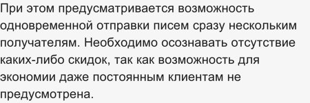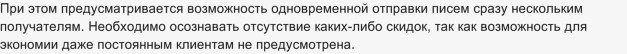 А вот выписка об отсутствии каких-либо скидок на почтовые рассылки: