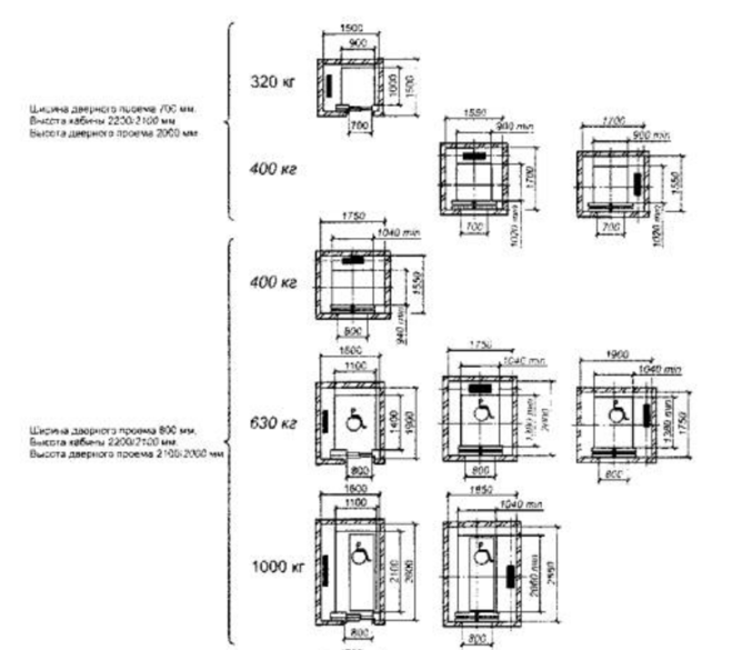 Все играет роль, и от этого зависят и размеры лифта, в частности и ширина входа в лифт.