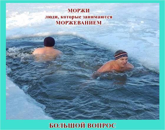 Моржами называют таких людей, которые занимаются плаванием в холодной воде.