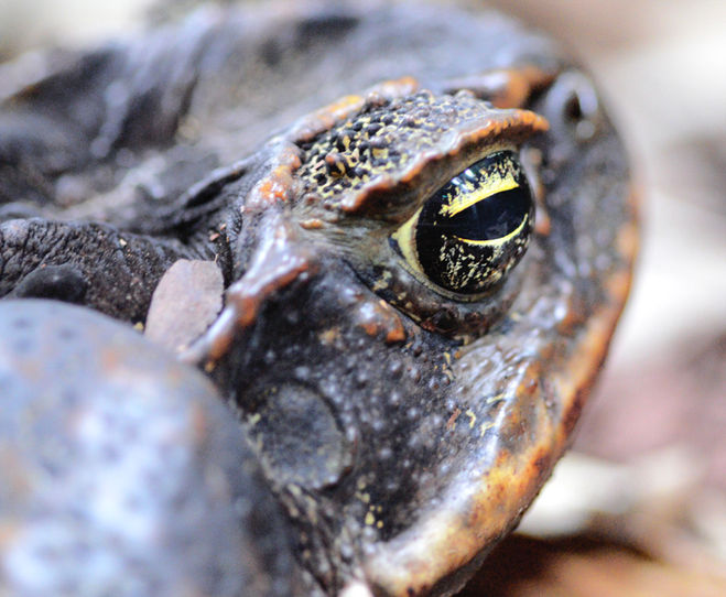 Это одна из самых крупных жаб в мире, которая может весить более килограмма. На своей родине эта жаба славится неумеренным аппетитом и ядовитостью.
