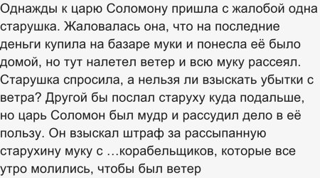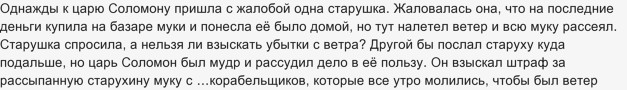 Кому присудил штраф мудрейший царь Соломон за то, что ветер раздул муку?