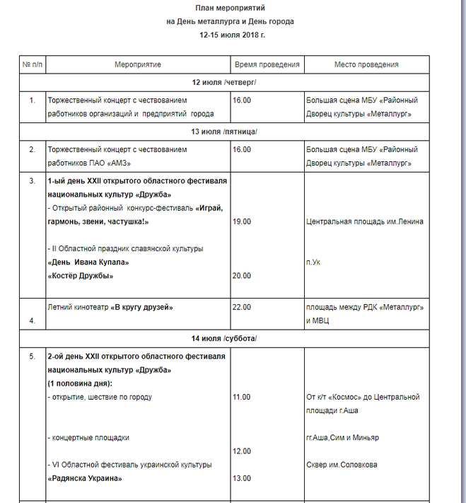 Аша. День города и металлурга 2018. Какая программа праздника?