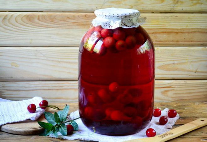 Я люблю душистый вишневый компот, который я делаю без сахара, но с пряностями. Добавляю душистый перец, гвоздику, ваниль либо мускатный орех, насыпая щепотку в банку с заранее уложенной вишней без косточек. Банки должны быть заполнены на две трети, после чего я наливаю в них кипяток, прикрываю крышками и стерилизую. Время стерилизации в зависимости от емкости банок такое: