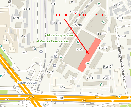 Находится Савеловский рынок электроники по адресу: Москва, Сущевский вал, 5, строение 1.