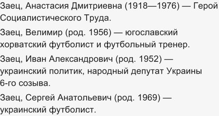 А еще про заеца. У нас в начальной школе № 657 учился мальчик по фамилии Заец! Оказывается такая фамилия есть: