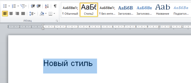 В результате этих действий будет создан новый стиль, он будет отображаться на панели инструментов (на скриншоте созданный стиль называется "Стиль 2").