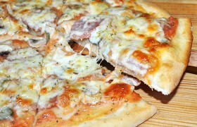 Еще мне нравится вместо салями в пиццу класть отварное мясо, чаще всего это куриное филе, очень редко свинина (она должна быть нежирная).