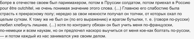 По уровню знаний и пригодности для учительского дела мосье Бопре сильно напоминает немца Вральмана из комедии И. Д. Фонвизина. Этот персонаж "переквалифицировался" из кучера в преподаватели арифметики, за явно чужое дело он взялся от отчаянья и безденежья: