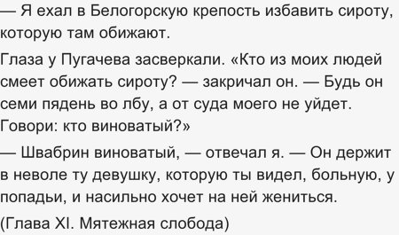 - персонаж Пушкина искренне любит девушку и готов ради неё на опасные для своей жизни поступки, даже просить за неё у Пугачёва:
