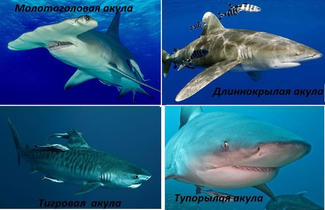 На самом деле только пять видов действительно опасны для человека: большая белая акула, тигровая акула, океаническая акула (или акула лонгимане), акула-молот и акула - бульдог. Эти акулы могут привести к нападениям, которые часто бывают кровавыми и даже смертельными.