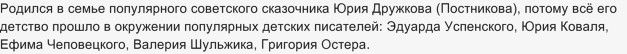 Отец- Юрий Дружков- писатель-сказочник, создатель журнала "Веселые картинки".