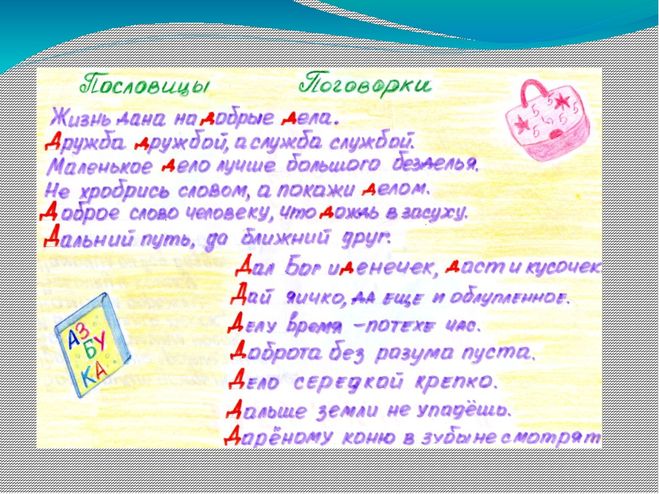 Можно взять данные пословицы и поговорки, а можно найти свои: