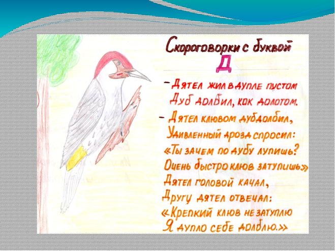 Находим стихотворение про букву "Д", оформляем картинки, слова со слогами.