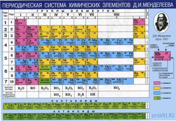 Периодическая система химических элементов или по другому "Таблица Менделеева" - это такая таблица, в которой все химические элементы классифицируются по каким-либо свойствам.