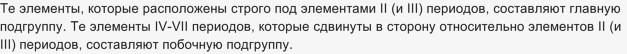 При этом в каждом периоде присутствуют два типа подгрупп - главная и побочная.