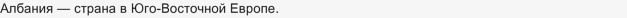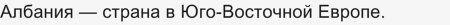 Албания (на албанском: Shqiperia) или Республика Албания — европейская страна, расположенная на Балканском полуострове, граничащая со Средиземным морем. Её столица — Тирана, расположенна в центре страны.