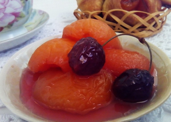 Дети любят желе, поэтому я добавляю желатин в компотик – получается домашнее желе с кусочками фруктов. А еще из спелых абрикосов и черешен можно сделать ароматное насыщенное варенье. При варке я добавляю лимонную кислоту, а фрукты долго варить не нужно. Отдельно готовится сироп, ягоды бланшируются, а затем заливаются сиропом – получаются черешенки и абрикоски в жидком сиропе.