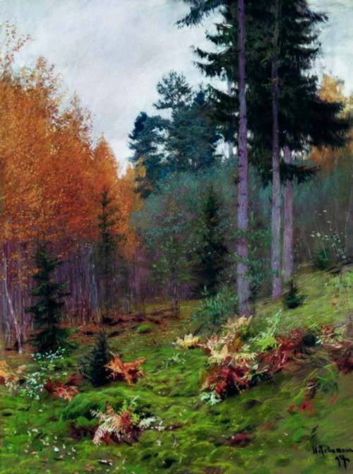 Эта картина написана в 1894 году. На картине изображён типично русский пейзаж осеннего леса. Картина выполнена в приглушенных хорошо подобранных пастельных тонах и поражает реалистичностью изображения лесной опушки, создаёт ощущение самобытности и неповторимости этого природного уголка. Вглядываясь в это полотно, зритель ощущает себя неотъемлемой частью природы, погруженным в атмосферу умиротворения и покоя, которая его буквально обволакивает.