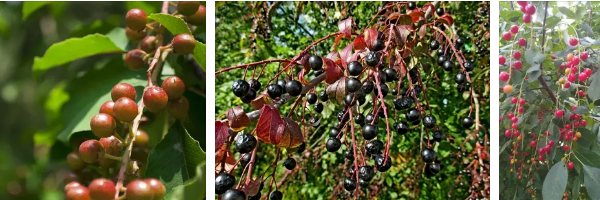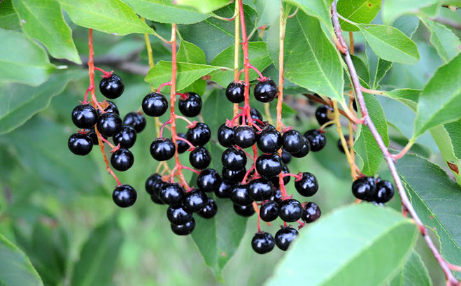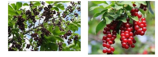 Черемуха бывает черноплодной с темными, практически черными плодами, так и красноплодной.
