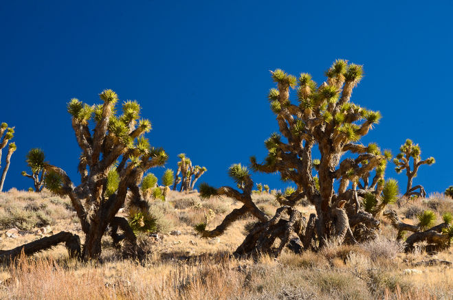В долине смерти 1000 растений.Это кактусы и суккуленты. Эхиноцереус и опунция.Юкка древовидная. Корни юкки такие длинные что доходят до грунтовых вод.Растения в местах лишенных выходов соли могут образовывать лес.Заросли юкки на фото.