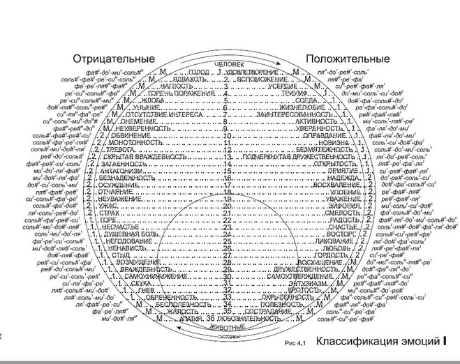 В соответствии с нею частоты эмоций соответствуют частотам музыкальных нот.