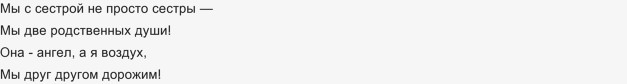 Мы друг друга понимаем без слов, потому что мы сёстры.